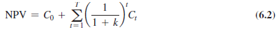 The rate of return k is also referred to as the discount rate, hurdle rate, or opportunity cost of capital. Given a stream of cash flows C0, Cj, … , CT over the next T periods, and a rate of return k, the net present value (NPV) of this cash flow stream is given by