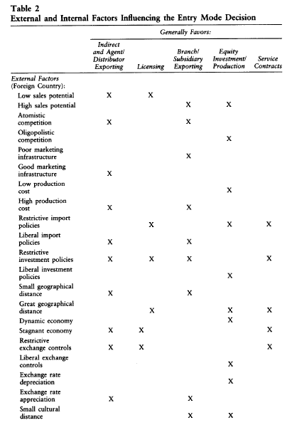 Source: Root Franklin R. (1998), Entry Strategies for International Markets, Jossey-Bass; 2nd edition.
