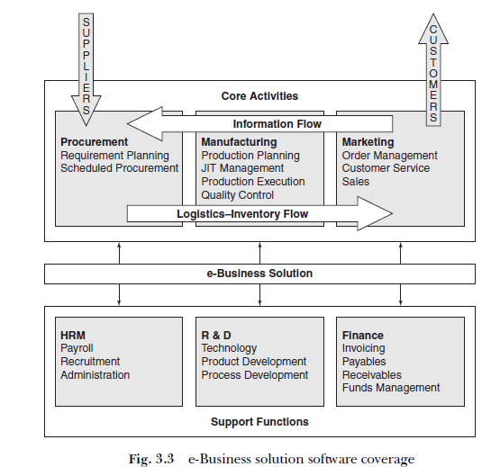 e-Business solution basically focuses on the integration of logistics, which encompasses the entire supply chain as shown in Figure 3.3. Hence, the success of supply chain depends on how effectively and efficiently the various logistics operations are performed in synergy using e-business solutions, which need to be customized for company-specific requirements.