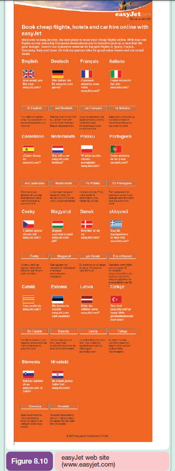 This historical case shows how the easyJet web site (Figure 8.10) became the main sales channel for easyJet from its launch in the 1990s. How the Internet was used for service delivery and marketing communications is also described. This case study has been retained since it is a popular case illustrating the benefits of a planned strategy to digital channels. By 2008, 98% of seats are sold online and easyJet still incentivizes people to book their cheap flights online through a £7.50 discount for each leg of a journey.