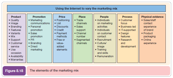 Figure 8.18 summarizes the different sub-elements of the 7 Ps. We will now consider how each element of the marketing mix can be varied or how we ‘mix the mix’ in more detail. You can also refer to Allen and Fjermestad (2001) for a more detailed assessment.