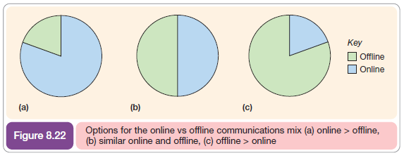 - Investment in online promotion techniques in comparison to offline promotion. A balance must be struck between these techniques. Figure 8.22 summarizes the tactical options that