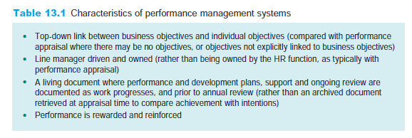 While many appraisal systems are still in existence and continue to be updated, performance management systems are increasingly seen as the way to manage employee performance, and have incorporated the appraisal/review process into this. In the Focus on skills at the end of Part 3 we consider the performance appraisal interview in the context of either an appraisal or a performance management system. Clark (2005) provides a useful definition of performance management, stating that the essence of it is: