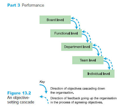 Organisational objectives are particularly important, as it is common for such objectives to be cascaded down the organisation in order to ensure that individual objectives contribute to their achievement (for an example of an objective-setting cascade, see Figure 13.2).