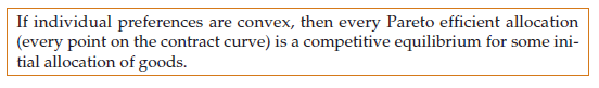The result that a competitive equilibrium can sustain every point on the contract curve is a fundamental result in microeconomics. It is important because it suggests an answer to a basic normative question: Is there a trade-off between equity and efficiency? In other words, must a society that wishes to achieve a more equitable allocation of resources necessarily operate in a manner that