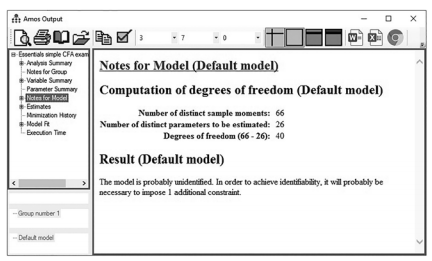 - The model is unidentified—after running the analysis, this error message will appear in the “Notes for Model” link of the output.