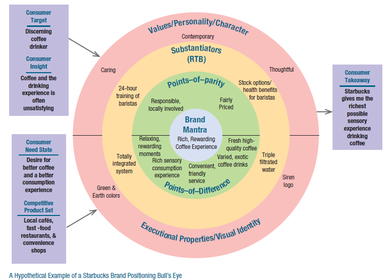 A brand bull’s-eye provides content and context to improve everyone’s understanding of the positioning of a brand in the organization. Here we look at a hypothetical Starbucks example.