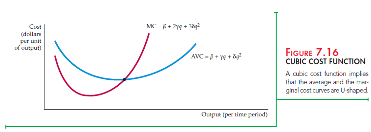 Figure 7.16 shows this cubic cost function. It implies U-shaped marginal as well as average cost curves.