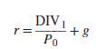 Our growing perpetuity formula explains P0 in terms of next year’s expected dividend DIV1, the projected growth trend g, and the expected rate of return on other securities of comparable risk r. Alternatively, the formula can be turned around to obtain an estimate of r from DIV1, P0, and g: