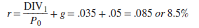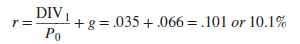 Our growing perpetuity formula explains P0 in terms of next year’s expected dividend DIV1, the projected growth trend g, and the expected rate of return on other securities of comparable risk r. Alternatively, the formula can be turned around to obtain an estimate of r from DIV1, P0, and g: