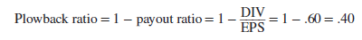 An alternative approach to estimating long-run growth starts with the payout ratio, the ratio of dividends to earnings per share (EPS). For Aqua, this ratio has averaged about 60%. In other words, each year the company was plowing back into the business about 40% of earnings per share: