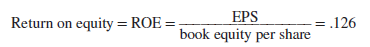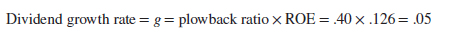 If Aqua earns 12.6% on book equity and reinvests 40% of earnings, then book equity will increase by .40 X .126 = .05, or 5%. Earnings and dividends per share will also increase by 5%: