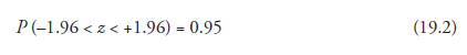 It is known that the area under the curve of standard normal distribution is the numerical measure of probability, P whose maximum value is 1.0, and further that 95 percent of the area under the curve lies between the z values of -1.96 and +1.96. These facts can be formulated as