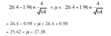 By this, we understand that the true value of fl, the population mean, lies somewhere between 25.42 and 27.38 and that we can be 95 percent confident in accepting this.