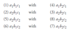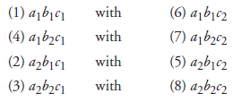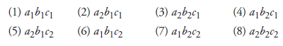 On the other hand, a one-factor-at-a-time experiment for studying the effect of a, as an independent variable, consists of conducting two replications—one at each level of a, namely, a1 and aj, keeping the levels of b and c constant in both these experiments. And similarly, when b and c are independent variables, the other factors are kept constant. Let us say that the following combinations of a, b, and c were experimented on: