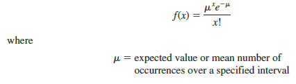 To illustrate this relationship, suppose the number of patients who arrive at a hospital emergency room during one hour is described by a Poisson probability distribution with a mean of 10 patients per hour. The Poisson probability function that gives the probability of x arrivals per hour is
