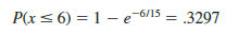 As with any continuous probability distribution, the area under the curve corresponding to an interval provides the probability that the random variable assumes a value in that interval. In the Schips loading dock example, the probability that loading a truck will take 6 minutes or less, P(x < 6), is defined to be the area under the curve in Figure 6.17 from x = 0 to x = 6. Similarly, the probability that the loading time will be 18 minutes or less, P(x < 18), is the area under the curve from x = 0 to x = 18. Note also that the probability that the loading time will be between 6 minutes and 18 minutes, P(6 < x < 18), is given by the area under the curve from x = 6 to x = 18.