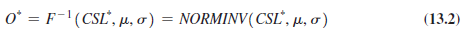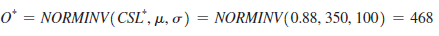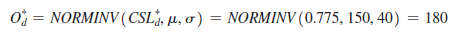 O* = NORMINV(CSL*, µ, σ) = NORMINV(0.75, 150, 40) = 177