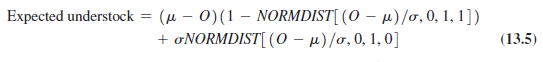 Example 13-2 illustrates the use of Equations 13.4 and 13.5 to evaluate the quantity expected to be overstocked and understocked as a result of an ordering policy (see worksheet Example 13-2).
