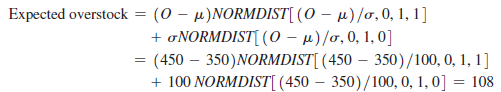 When O units are ordered, a firm is left with either too much or too little inventory, depending on demand. When demand is normally distributed, with expected value p and standard deviation s, the expected quantity overstocked at the end of the season is given by