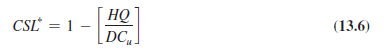 Example 13-1 illustrates the use of Equations 13.1 and 13.2 to obtain the optimal cycle service level and order quantity (see worksheet Example 13-1 in spreadsheet Chapter 13-examples).
