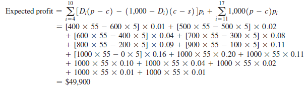 – 500 X Prob(demand < 1,100) = $5,500 X 0.49 — $500 X 0.51 = $2,440