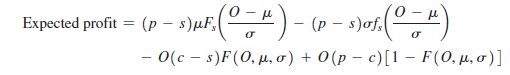When demand is normally distributed, with a mean of p and a standard deviation of s, the expected profit from ordering O units is given by