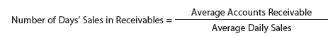The number of days’ sales in receivables is an estimate of the length of time the accounts receivable have been outstanding. With credit terms of n/30, the number of days’ sales in receivables should be about 30 days. It is computed as follows: