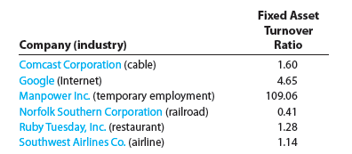 As illustrated on the prior page, the fixed asset turnover ratio can be compared across time for a single company. In addition, the ratio can be compared across companies. For example, the fixed asset turnover ratio for a number of different companies and industries is shown below.