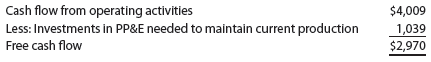 To illustrate, the cash flow from operating activities for Research in Motion, Inc., maker of BlackBerry® smartphones, was $4,009 million in a recent fiscal year. The statement of cash flows indicated that the cash invested in property, plant, and equipment was $1,039 million. Assuming that the amount invested in property, plant, and equipment is necessary to maintain productive capacity, free cash flow would be computed as follows (in millions):