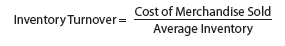 Inventory turnover measures the relationship between the cost of merchandise sold and the amount of inventory carried during the period. It is computed as follows: