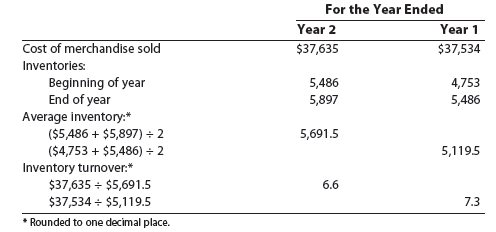 To illustrate, inventory turnover for Best Buy is computed from the following data (in millions) taken from two recent annual reports.
