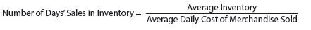 The number of days’ sales in inventory measures the length of time it takes to acquire, sell, and replace the inventory. It is computed as follows: