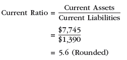 Working Capital = Current Assets – Current Liabilities = $7,745 – $1,390 = $6,355