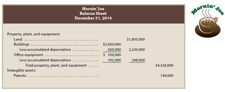 The balance sheet presentation for Mornin’ Joe’s fixed and intangible assets is shown below.