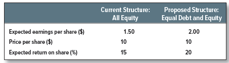 Leverage increases the expected stream of earnings per share but not the share price. The reason is that the change in the expected earnings stream is exactly offset by a change in the rate at which the earnings are discounted. The expected return on the share (which for a perpetuity is equal to the earnings-price ratio) increases from 15% to 20%. We now show how this comes about.