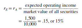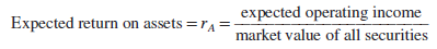 The expected return on Macbeth’s assets rA is equal to the expected operating income divided by the total market value of the firm’s securities: