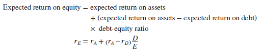 We can turn the formula around to solve for rE, the expected return to equity for a levered firm: