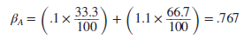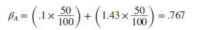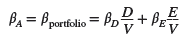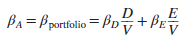 The beta of this hypothetical portfolio is just a weighted average of the debt and equity betas: