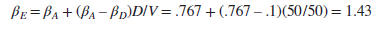 You can use our formulas to unlever betas—that is, to go from an observed pE to pA. You have the equity beta of 1.43. You also need the debt beta, here .1, and the relative market values of debt (D/V) and equity (E/V). If debt accounts for 50% of overall value V, then the unlevered beta is