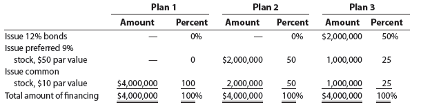 Each of the preceding plans finances some of the corporation’s operations by issuing common stock. However, the percentage financed by common stock varies from 100% (Plan 1) to 25% (Plan 3). In deciding among financing plans, the effect on earnings per share is often considered.