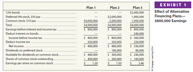 Exhibit 1 indicates that Plan 3 yields the highest earnings per share on common stock and, thus, is the most attractive for common stockholders. If the estimated earnings are more than $800,000, the difference between the earnings per share to common stockholders under Plans 1 and 3 is even greater.2