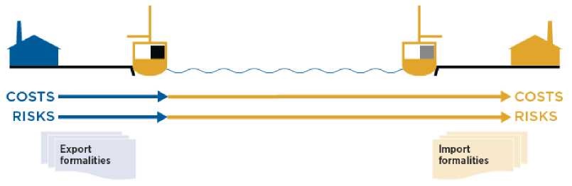 4. Export/import clearance – FOB requires the seller to clear the goods for export, where applicable. However, the seller has no obligation to clear the goods for import or for transit through third countries, to pay any import duty or to carry out any import customs formalities.