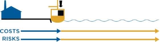 The benefit to the buyer is that it has control of the goods on the vessel it has arranged, and it has control of the costs as well. The buyer has the risk of loss or damage to the goods from the point where they are delivered on board, and depending on the nature of the goods and their packaging, if any, it would be wise to detail in the contract precisely what this means. For example, with bulk product poured into the holds it would likely include the word “trimmed” to indicate that the load is evenly poured throughout the hold and relatively level at the top to distribute the weight correctly; for drums of product it might include agreement that dunnage, often scrap material, be provided to prevent the drums moving and sliding, and that they be lashed to hold them in place – what part does the seller have to play in these?