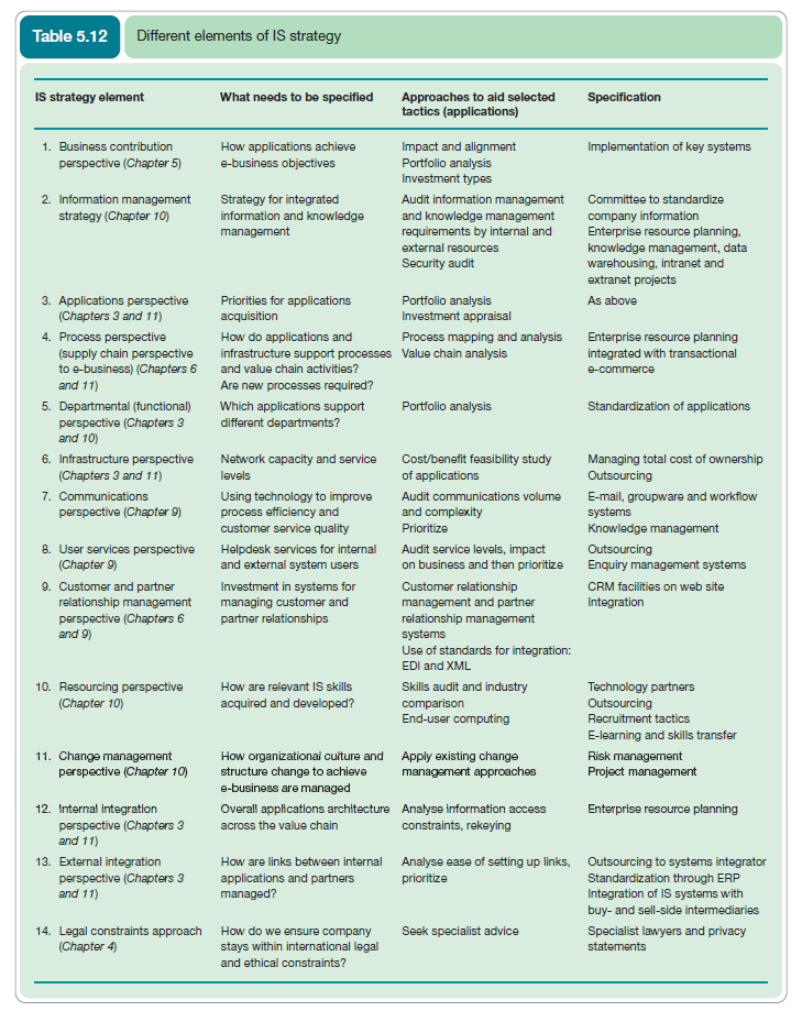 Developing an IS strategy for e-business involves many different perspectives, rather than a single perspective such as hardware technologies or applications to deploy. Ward and Griffiths (1996) suggest an IS strategy plan contains three elements: