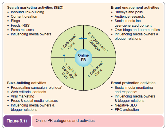 To summarize the section on online PR see Figure 9.11. This highlights the importance of activities involving participation and how all online PR activities feed back into SEO through the links generated.