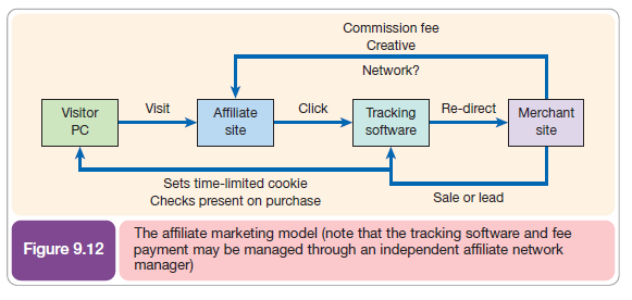 Affiliate marketing has become very popular with e-retailers since many achieve over 20% of their online sales through affiliates (also known as ‘aggregators’ since they aggregate offers from different providers). The great thing about affiliate marketing for the e-retailer, is that they, the advertiser, do not pay until the product has been purchased or a lead generated. It is sometimes referred to as‘zero-risk advertising’ (Figure 9.12).