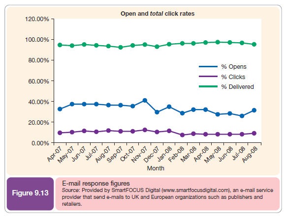Figure 9.13 shows that the key measures for e-mail marketing are:
