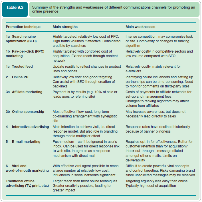 In this section we will review approaches to online promotion using the different tools of Figure 9.6 from 1 to 6, including search engine marketing, online advertisements, e-mail and other methods of generating visitors to a web site. These techniques are often combined in what is known as a ‘traffic-building campaign’; this is a method of increasing the audience of a site using different online (and offline) techniques.