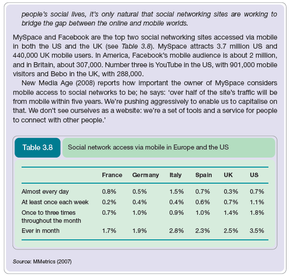 Bluetooth technology has potential for different forms of local marketing campaigns known as proximity marketing: (1) viral communication, (2) community activities (dating or gaming events), (3) location-based services – electronic coupons as you pass a store. It is currently in its infancy, but some trials of bluecasting such as that shown in Figure 3.23 where sample music tracks are downloaded and in Mini Case Study 3.6 have been successful.